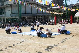 今年度の個人走では、走り終わった後、大きな旗にみんなが手形を押していきます。