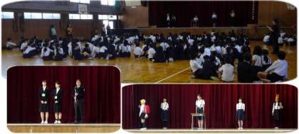児童集会のあとは、栄養教諭実習の先生から、終わりの挨拶がありました。わずか1週間でしたが、九条北小学校での経験を生かして、素晴らしい先生を目指していっていただきたいものです。