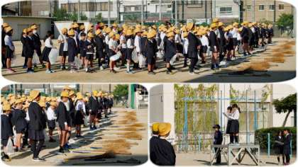 年に1度、学校や地域の清掃を通して、奉仕活動をする態度を養うために行っています。たてわり班で行うことで、異学年の友だちと協力して活動できるようにすることもねらいです。