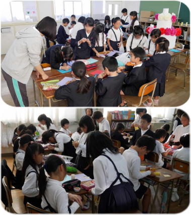 11月12日(火) 展覧会に向けて準備をがんばっている、中学年のようすです。