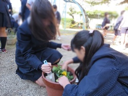 九条北小学校では、花を咲かせる喜びを知り、植物を大切に育てようとする気持ちをもたせるために、グループ一鉢活動をおこなっています。今年は、10月27日月曜日から始まりました。学年のグループごとに、チューリップ、スイセンの球根とパンジーの苗を植えます。今日は、午前中に6年生、午後からは3年生、5年生が鉢植えをしました。毎年、卒業式が近づくと、きれいなチューリップが咲きます。しっかり育ててほしいですね。