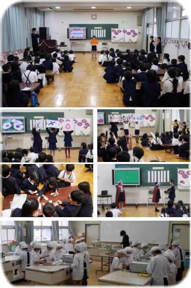 2年生のみんなが大切に育ててきたさつまいもについて、クイズやパズル、劇などで工夫して発表し、1年生にも楽しんでもらいました。最後には、みんなでいただきますと、朝から焼いて蜜をかけて用意しておいたさつまいもを、おいしく味わいました。