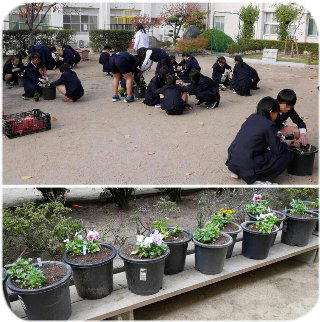 12月5日(木) グループ一鉢活動で、6年生が寄せ植えをしていました。