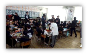 今日の授業は、大阪市小学校教育研究会算数部の授業研究です。たくさんの先生方に囲まれて、緊張したと思いますが、子どもたちもがんばって学習していました。