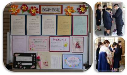 今年度は、例年と異なり、新型コロナウイルス感染症対策として、来賓の方々はご遠慮いただき、式場には、卒業生と最小限の同居する親族、教職員のみ。座席も十分な間隔を取って広々とした状態で行いました。