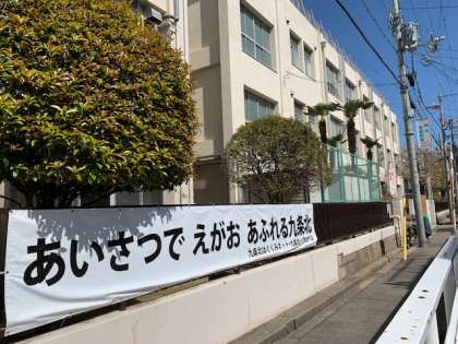 親子で「学校探検」 2日目(2) 公開日 2020/04/14 更新日 2020/04/14 お知らせ せいもん の しゃしん です。 「あいさつ で えがお あふれる 九条北(くじょうきた)」 げんきよく あいさつ して とうこうしましょう! せいもん には 「スロープ」があるので、くるまいす の ひと も あんしんです。 いいね(0)