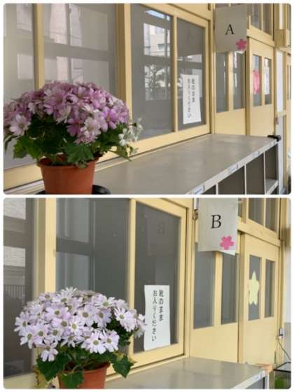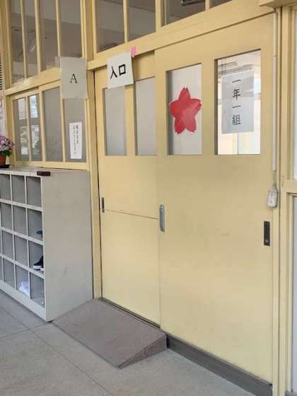 「1ねん1くみ」 と かいてある きょうしつ が、みなさん の きょうしつ です。となり の きょうしつ は、「ていがくねんルーム」 と いい、 ここも 1ねんせい が つかいます。いまは、 1つの きょうしつ に おおぜいに ならないように、 2つの きょうしつ をつかえるように、 じゅんび しています。