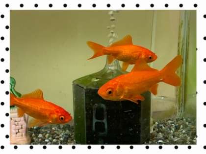 きょうしつ の まえ の すいそう には、「きんじょさん」もいます。みんな が がっこうに くる ひ を まっています。