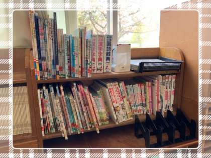 1つめ は、「がっきゅうぶんこ」だよ。ここに ある ほん は、きょうしつ で よむこと が できるよ。