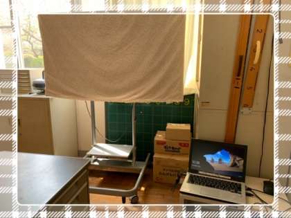 3つめは、カバー を かけてあるけれど、「でんしこくばん」だよ。じゅぎょう の ときに、いろいろなもの を うつしてくれるので、べんきょう が わかりやすくなるんだなあ〜。