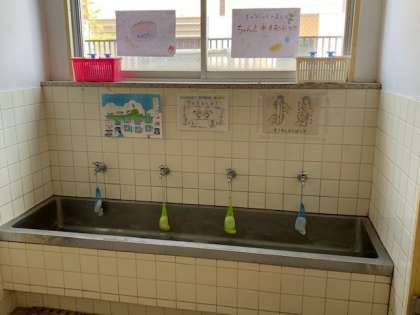 きょうしつ の まえ に、「てあらいば」 が あります。
