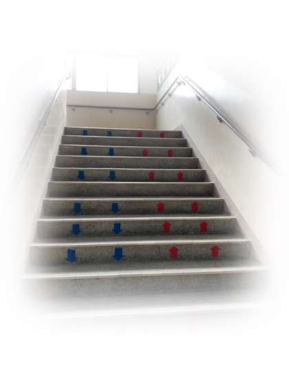 げんかん から はいって ひだり に すこし すすんだ ところに、 かいだん が あります。 かいだん を 2かい に のぼってみましょう。