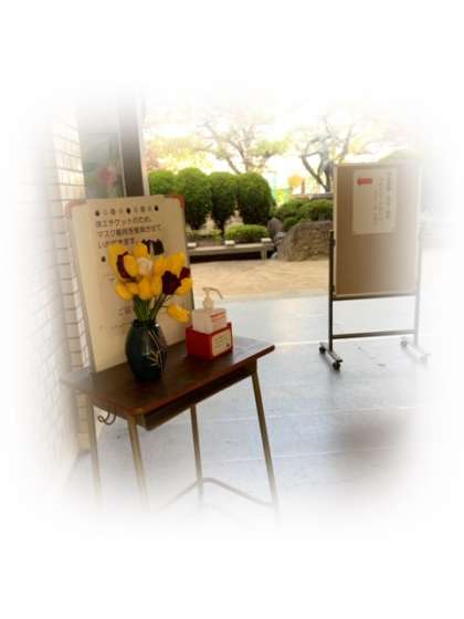 玄関のアルコール消毒の横に、チューリップが飾ってあります。九条北小学校の様々なところを、色とりどりにチューリップが華やかにしてくれていましたが、そろそろチューリップの季節が終わりに近づいてきました。本日飾っているチューリップは、お越しいただいた保護者の皆様をお迎えする「管理作業員さんの心遣い」です。