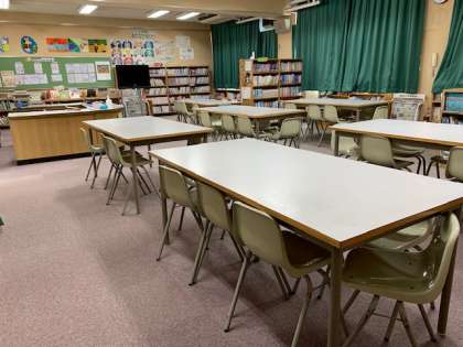 「としょかん」 は ひろくて、 ほん も いっぱい あるよ。