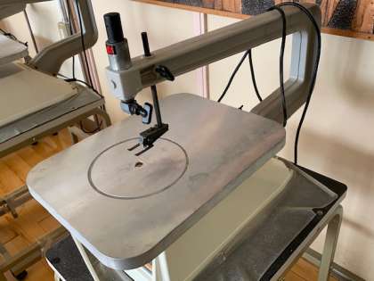 でんき で うごく 「いと のこぎり」 ということかな。 てさぎょう では むずかしい とき に、 これを つかって きっていく きかい なんだとか・・。