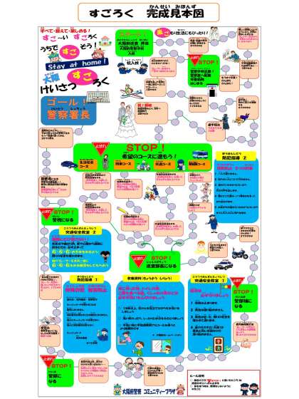 大阪府警察広報課が、新型コロナウイルス感染拡大防止のため、自宅で「5つの約束」等が学べて・鍛えて・楽しめる「うちですごそう!けいさつすごろく」を作成したそうです。この連休中、家族で楽しんで見ませんか。