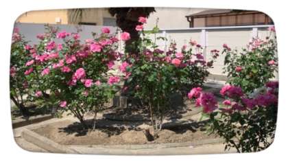 南門横のバラの花は、GWを過ぎても満開です。まだまだきれいな花を見せてくれるようです。