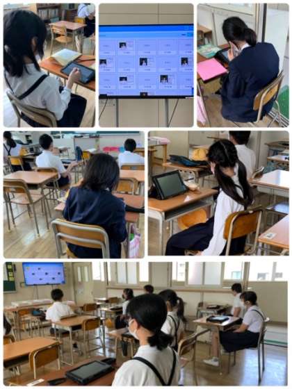 6年生は、タブレットの発表ノートを使って、「1年生へのメッセージと自己紹介」を作成しました。