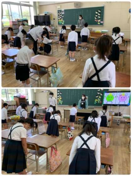 1年生〜はじめてのチャイム 公開日 2020/05/21 更新日 2020/05/21 お知らせ 今日は、久しぶりに始まりのチャイムを鳴らしました。1年生にとっては、初めて聞くチャイムです。チャイムの音を合図に、授業が始まる・・ということを、今日は勉強しました。チャイムの音で、気持ちの切り替えができるようにしましょうね。 いいね(0)