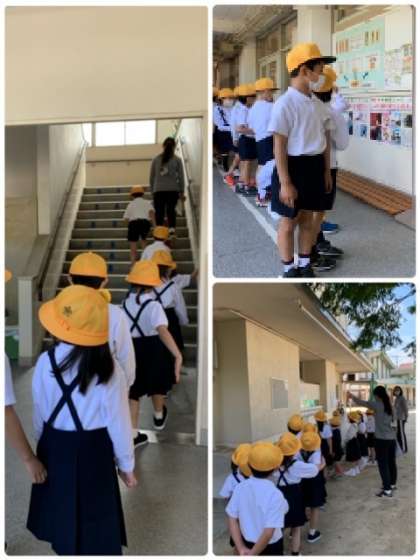 階段を上がるときは、ホームページの「親子で学校探検」を見てくれていたようで、矢印に従って、きちんと右側通行をしていました。