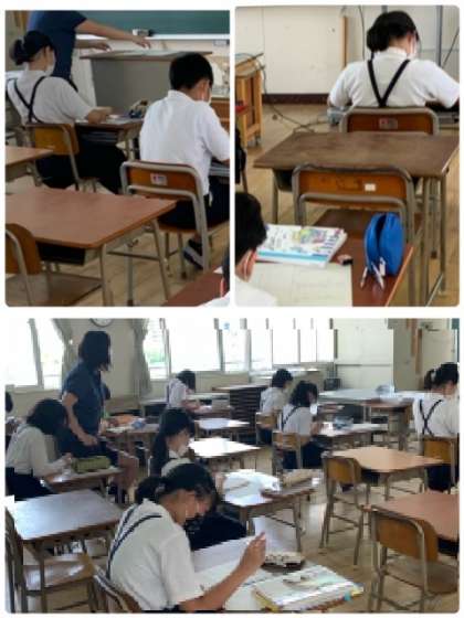 今週、6年生は、1日3時間で3日間(月・木・金)の授業を実施します。今日は、算数・社会・理科の3教科を学習しました。