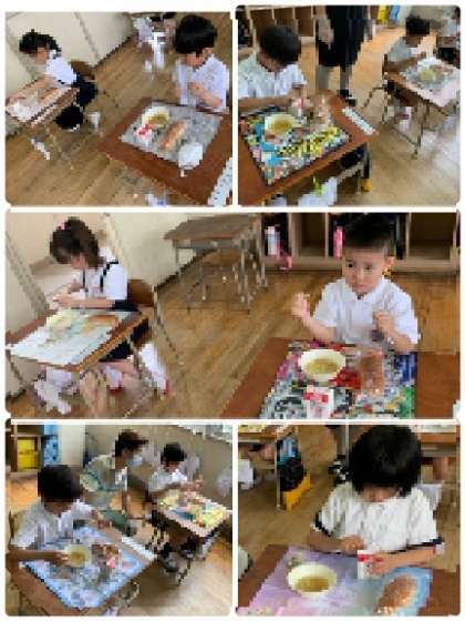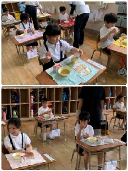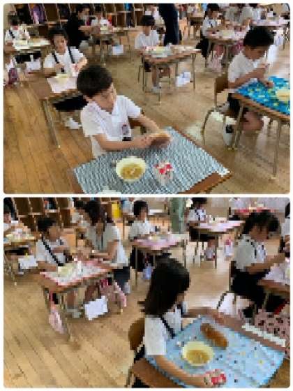 牛乳にストローを入れて・・・。まずは、牛乳を一口。