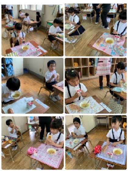 おさつパンは、ほんのり甘くて、思わずにっこりしていました。