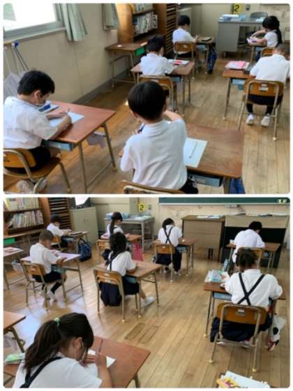 1年生 国語 公開日 2020/06/02 更新日 2020/06/02 お知らせ 1年生の国語の授業の様子です。単元「よろしくね」の学習です。宿題で練習した名前を書いて、自己紹介の文章を作っています。 「わたしは、 です。 がすきです。」 「ぼくは、 です。 がすきです。」 いいね(0)