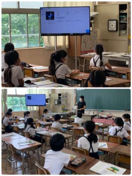 3年生の音楽の授業の様子です。「3年生から取り組むことがあります。」という先生の問いかけに、「リコーダー!」とすぐに答えが返ってきました。2年生の終わりに注文していたリコーダーも、届いています。「早く吹いてみたい!」と、わくわく感が伝わってきます。今日は、まだ演奏はしませんが、リコーダーの音色を聞いてみました。とても楽しみにしている様子が感じられます。