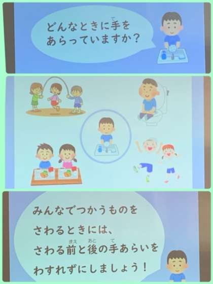 学校生活の中で、「手洗いをする場面」についても、確認していました。正しい手洗いは、「せっけんで30秒」洗います。