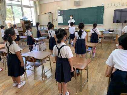 1年生の朝の会の様子です。元気な「おはようございます」のあいさつで1日が始まりました。