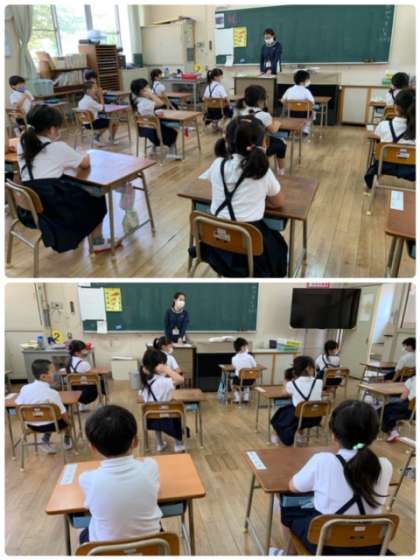 6月9日(火)、1年生の朝の会の様子です。今日も元気に1日が始まりました。