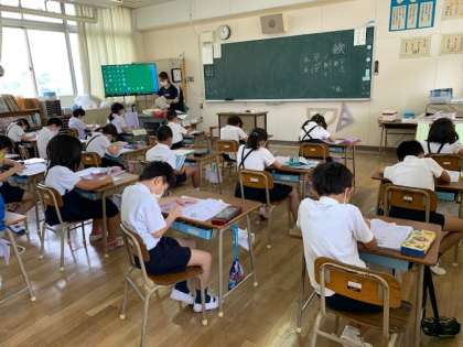 2年生の国語の授業の様子です。今日の漢字は「数 かず」です。集中して練習しています。