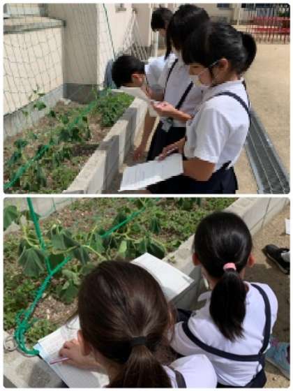 どちらを観察するかを決めて、スケッチをしています。また、特色をみつけて書き込んでいます。