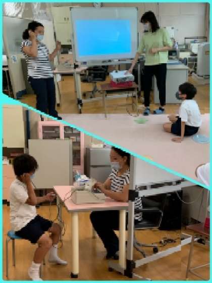 お話の後、順番に「聴力検査」を実施しました。順番を待っている児童も、静かに待機していました。
