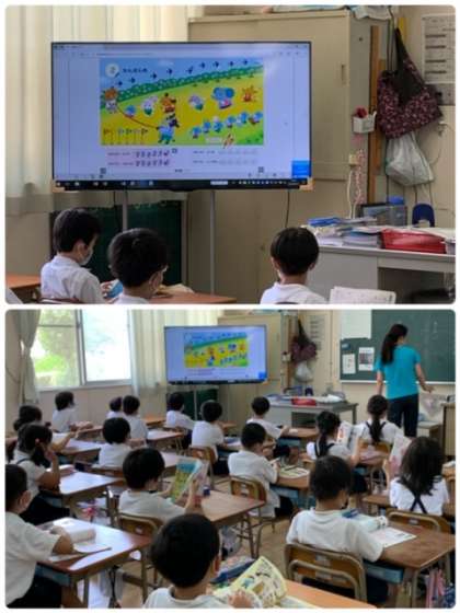 休憩時間が終わって、教室に児童が戻ってきました。これから3時間目、算数の学習をします。今日は、単元「なんばんめ」の学習です。