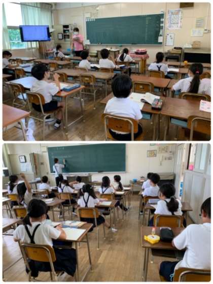 3年生の授業の様子です。1クラスを2分割して、国語と算数の授業をしています。
