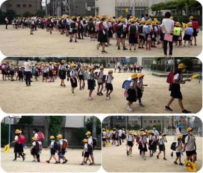 最後は、運動場に班ごとに並び、集団下校を行いました。朝の集合場所の確認もしています。明日からは、行儀よく集団登校をすることになります。