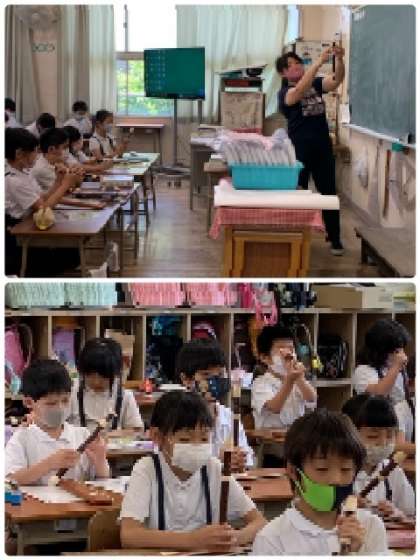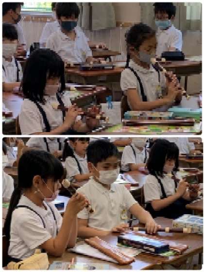 まずは、リコーダーのしくみを教えてもらっています。