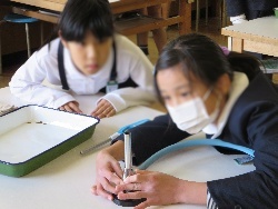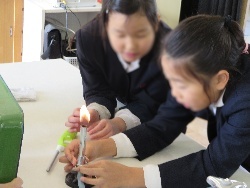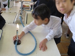 理科(4年生) 公開日 2014/12/02 更新日 2014/12/02 お知らせ 12月2日火曜日、4年生の子どもたちが、理科室で、実際に火をつけ、アルコールランプとガスバーナーの使い方の練習をしました。初めは、怖がっている子どももいましたが、最後の方は、ずいぶん慣れている様子でした。 いいね(0)