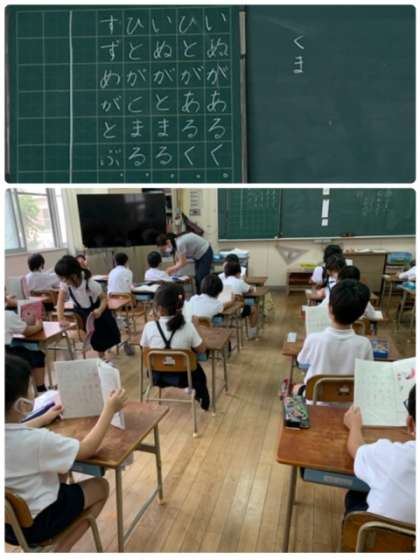 1年生の「パワーアップタイム」の様子です。今日は、国語の時間に学習した「〇〇があるく」「〇〇がとまる」「〇〇がとぶ」の文章を、声に出して読んでいました。
