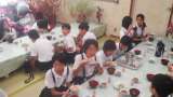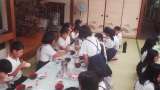 7月27日土曜日11時40分、5年生はお昼ご飯をいただいています。メニューは炊き込みご飯です。