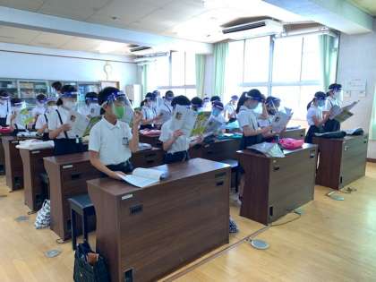 5年生の音楽の授業の様子です。最初に、昨年度に歌ったことのある「Believe(ビリーブ)」を歌いました。