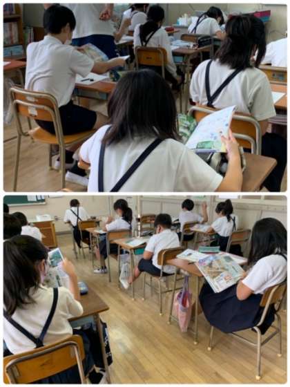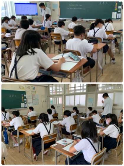 6年生の社会の授業の様子です。「歴史」の学習をしています。今日は、大和朝廷の時代の学習です。先生から、「なぜ貴族や天皇は、大きな古墳を作ったのか。」と問いかけられました。自分なりに考えたり、資料集からヒントを探したり、それぞれがしっかり考えていました。