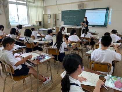 4年生は、1クラスを2つの分けて、算数と理科の授業をしています。