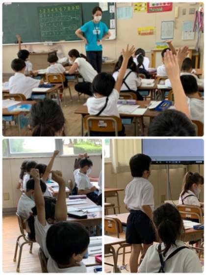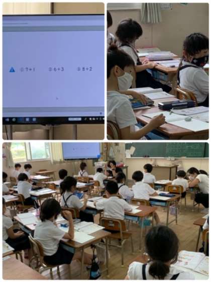 1年生の算数の授業の様子です。「7+1= 」「6+3= 」「8+2= 」に取り組んでいます。