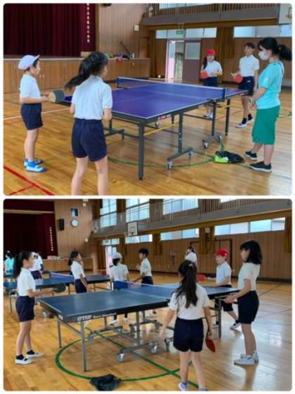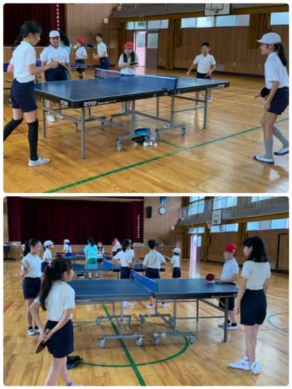 インドアクラブは、講堂で活動しています。今日は、卓球に挑戦しています。うまくラリーができたでしょうか。
