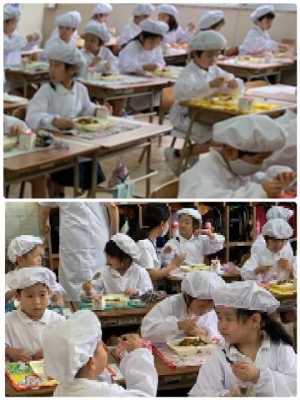 1年生 給食 公開日 2020/07/10 更新日 2020/07/10 お知らせ 担任の先生より「旬のなすが入ったカレーです。旬とは、一番おいしい時期ということです。おいしくいただきましょう。」とお話ししてもらっていました。 みんな、おいしそうに食べています。 いいね(0)