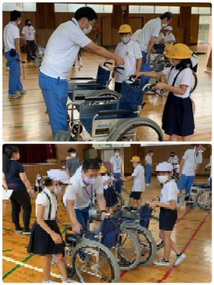 リハビリーテーションセンターの方にお越しいただき、3年生を対象に「車いす体験講習会」を実施していただきました。