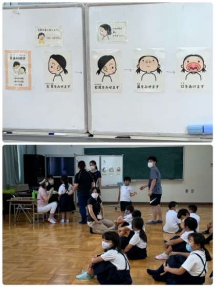 耳鼻科検診 公開日 2020/07/16 更新日 2020/07/16 お知らせ 校医先生にお越しいただき、全学年の「耳鼻科検診」を実施しました。広い場所で行うために、場所を保健室から多目的室に移して行っています。 いいね(0)